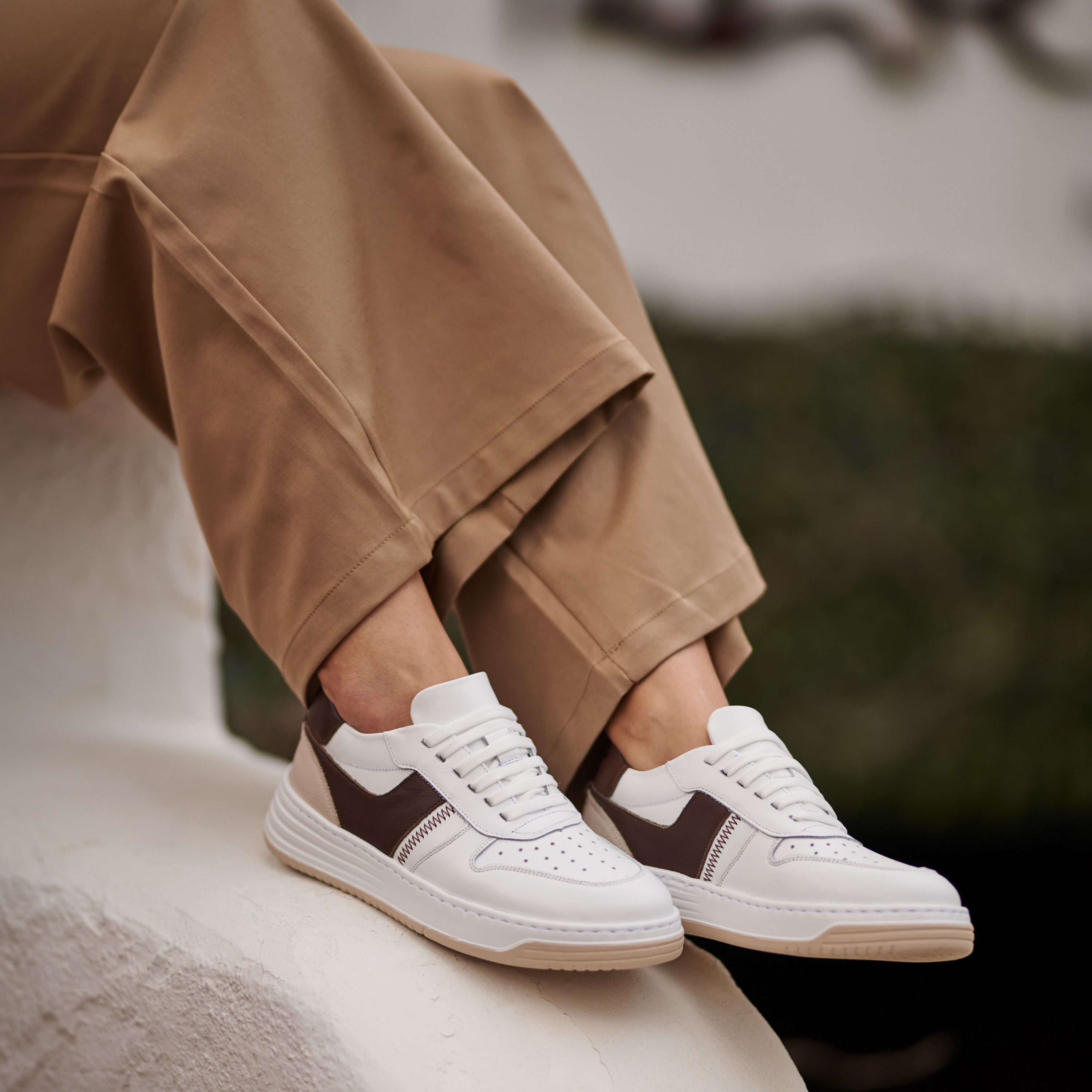 • Baskets femme 6088 blanc+beige lifestyle