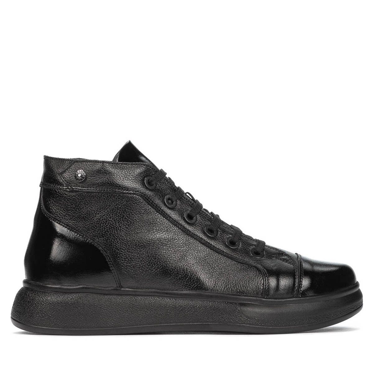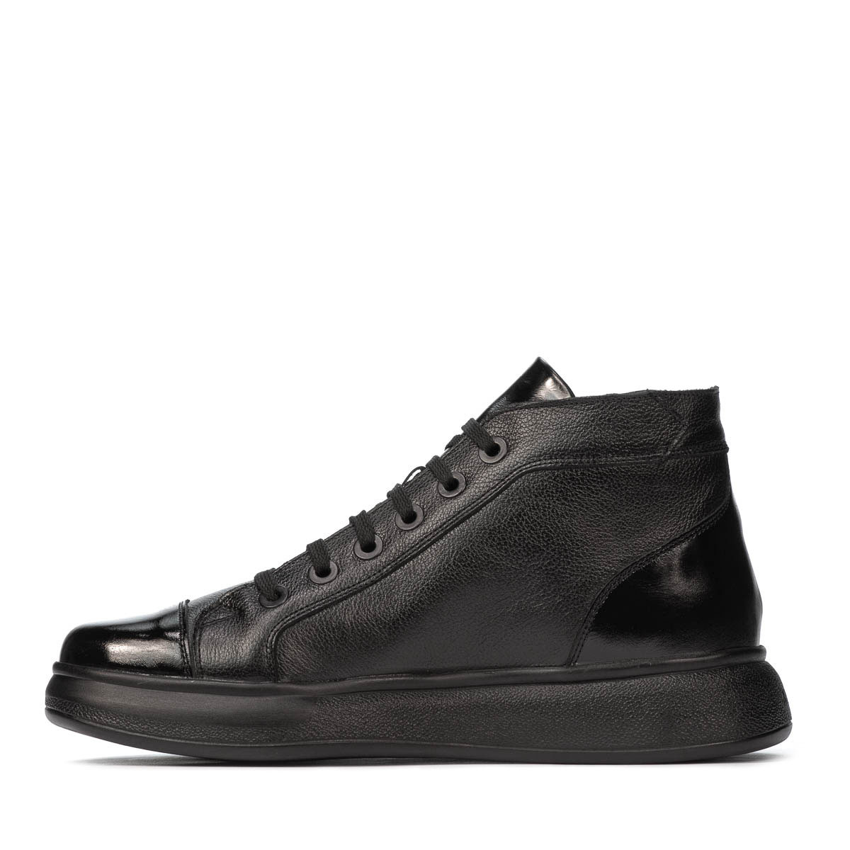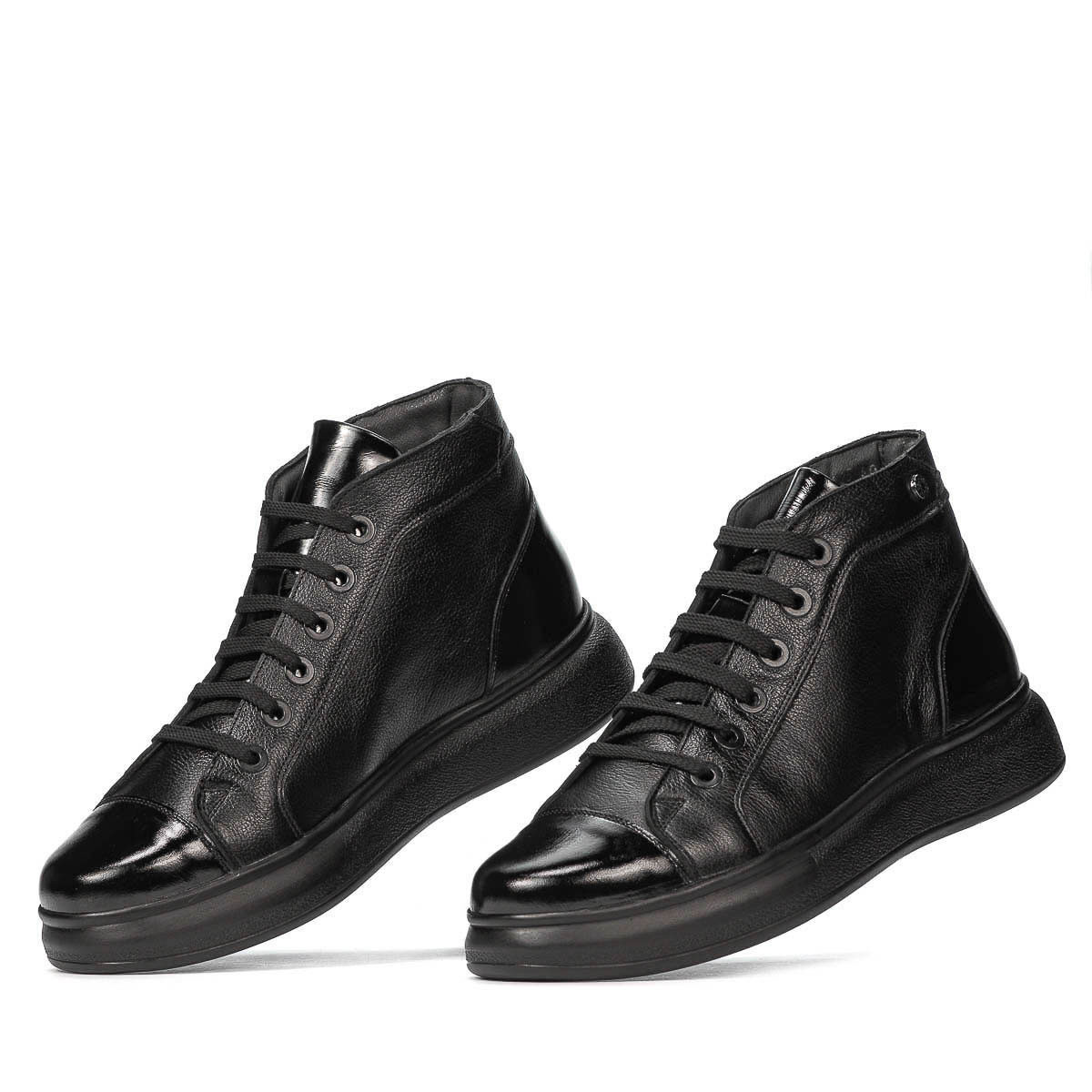 Bottes en cuir naturel pour hommes. Le design est attrayant grâce à la combinaison de cuir box et de cuir verni. La semelle légère et confortable vous aide à être en forme toute la journée. La qualité au prix du fabricant.