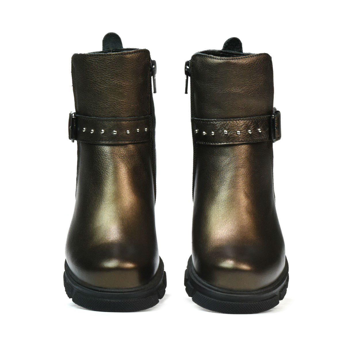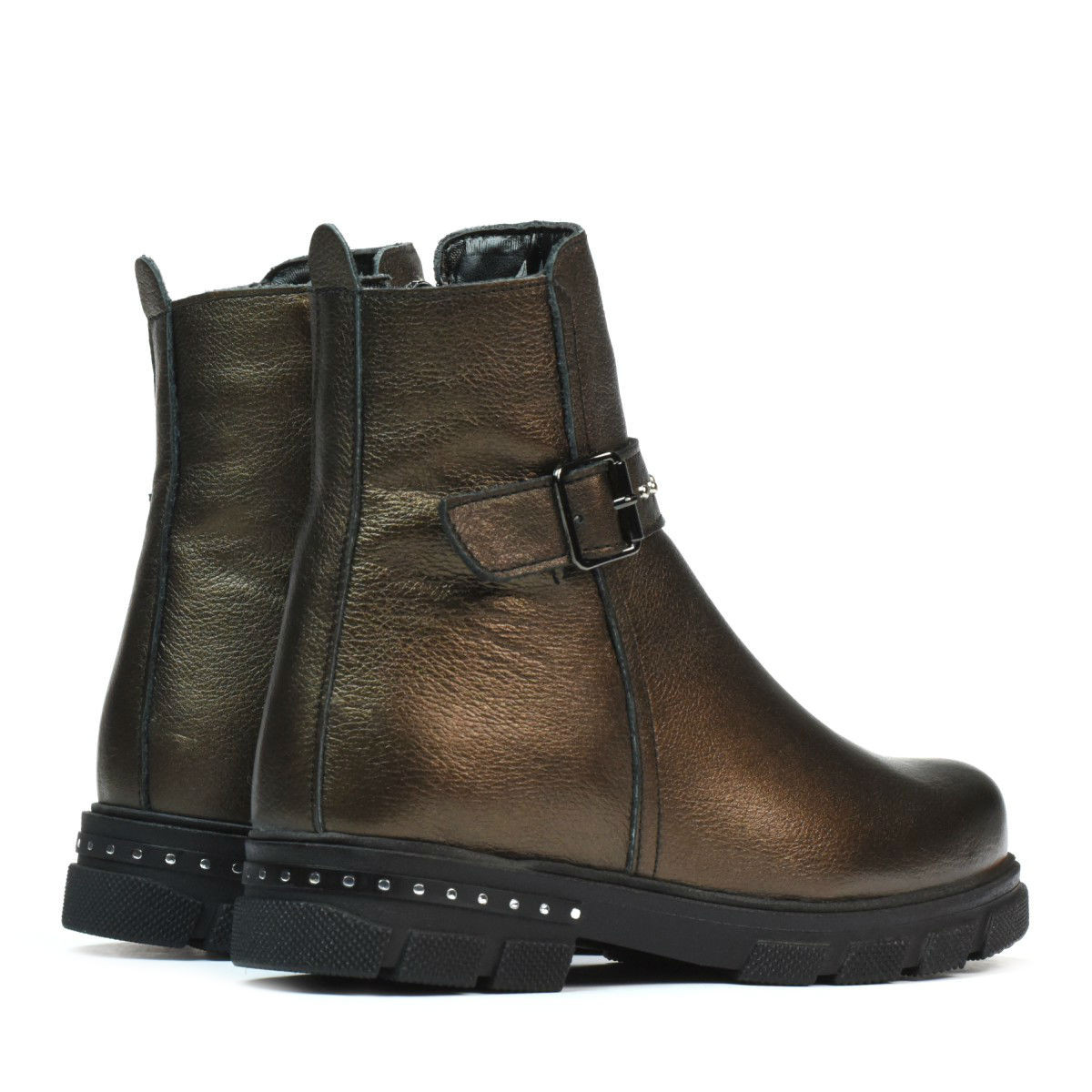 Bottes en cuir naturel pour enfants. La semelle épaisse ainsi que la matière intérieure protège du froid. Équipé d'une fermeture éclair latérale, ce qui facilite l'enfilage. Les cibles sur la barre supérieure, ainsi que les inserts argentés rendent ce modèle attractif. La qualité au prix du fabricant !
