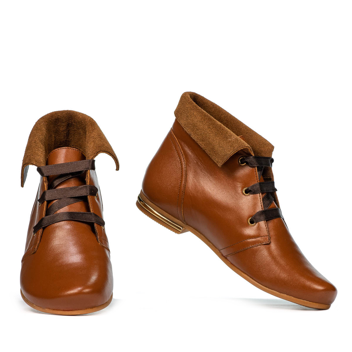 Adaptées au printemps et en été, à la fois à l'école, au travail et pour les promenades, ces chaussures se distinguent par le modèle spécial donné par le cuir plié à l'extérieur, les lacets et les coutures fines. Le marron ciré peut être combiné aussi bien avec un pantalon coloré qu'avec un jean. Soyez en phase avec la mode, à un prix abordable!