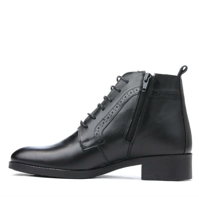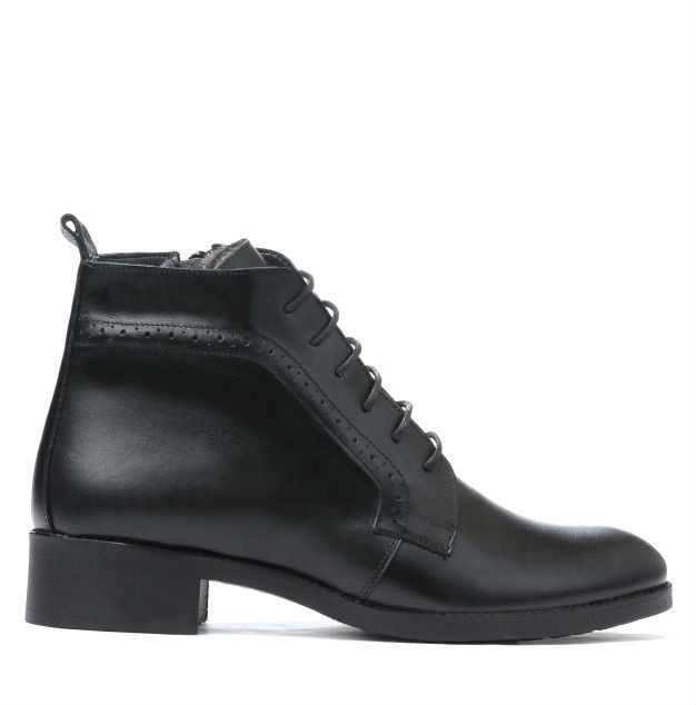 Bottes pratiques pour femmes en cuir naturel. Modèle discret avec pointe légèrement allongée et nettoyage fin. Il peut être porté dans une combinaison élégante et décontractée. La semelle confortable et le talon légèrement haut vous offrent du confort. Elles sont dotées à la fois d'un lacet et d'une fermeture éclair latérale. Prix constructeur.