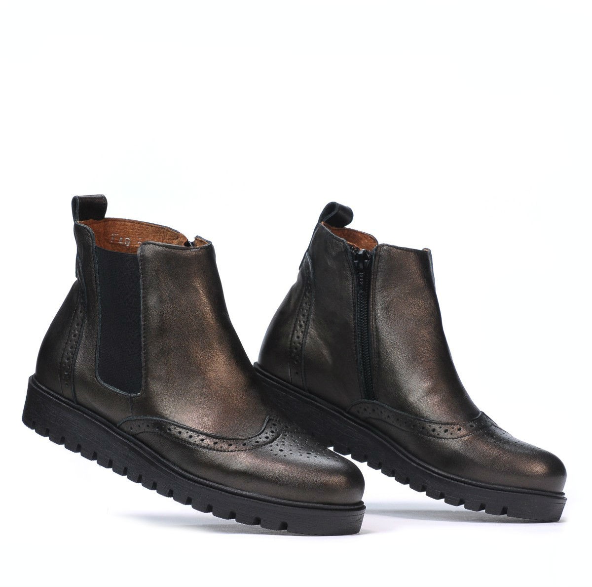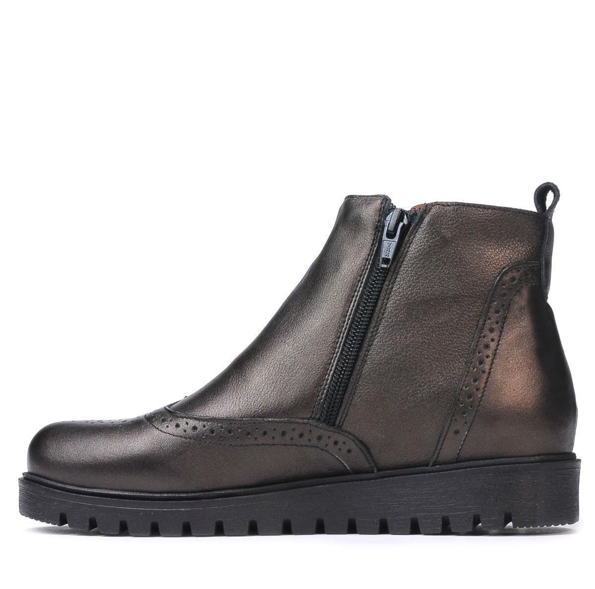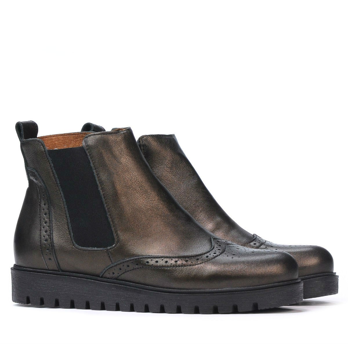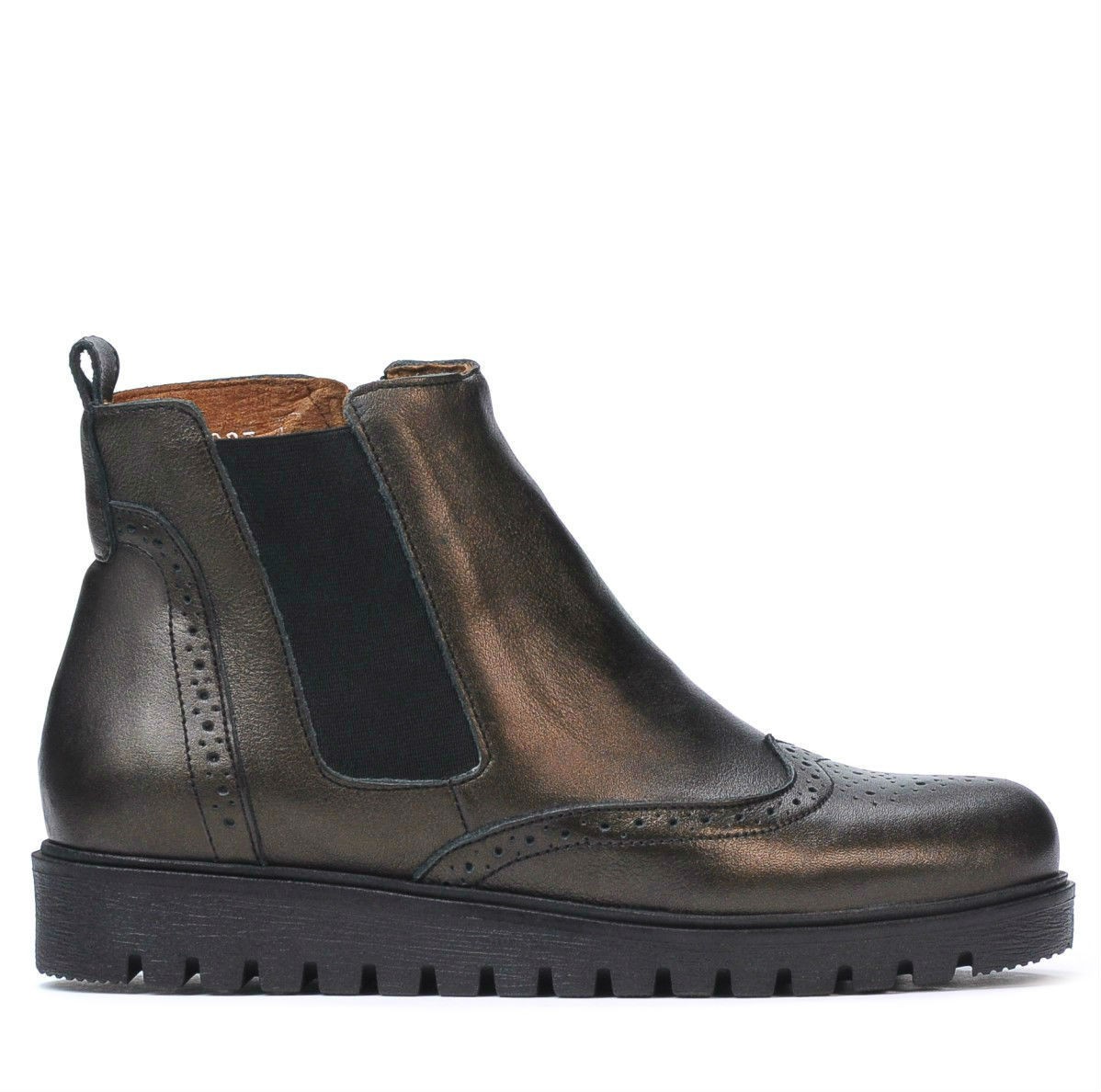 Les bottines en cuir naturel à perforations sont un incontournable de la saison. Le modèle attrayant est complété par l'élastique latéral qui aide à les façonner en fonction de l'épaisseur du pied. La fermeture éclair à l'intérieur facilite l'enfilage rapide. La semelle légèrement haute protège du froid et augmente le confort.