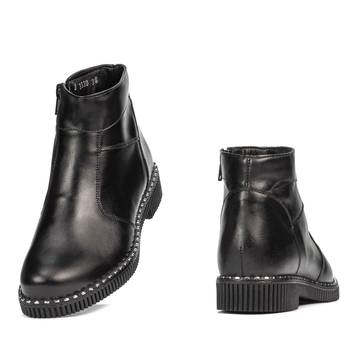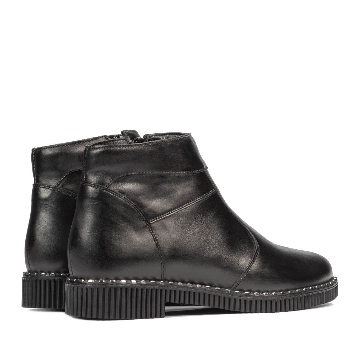 Bottes en cuir naturel pour femme. Légère et douce, la semelle est pourvue d'inserts métalliques. Ces éléments donnent un air raffiné et spécial au design. La fermeture éclair latérale facilite un enfilage confortable et rapide. Qualité et confort au prix constructeur.