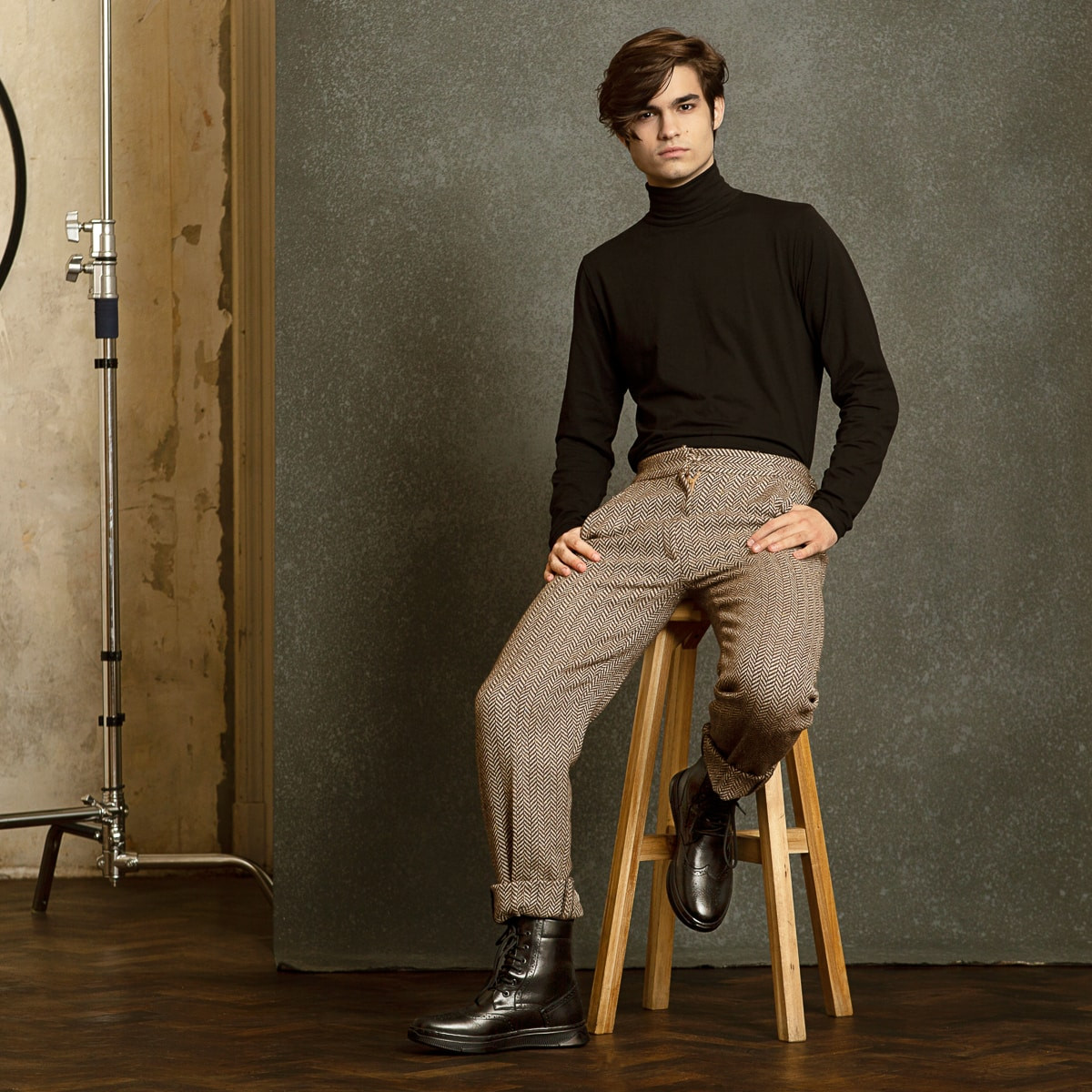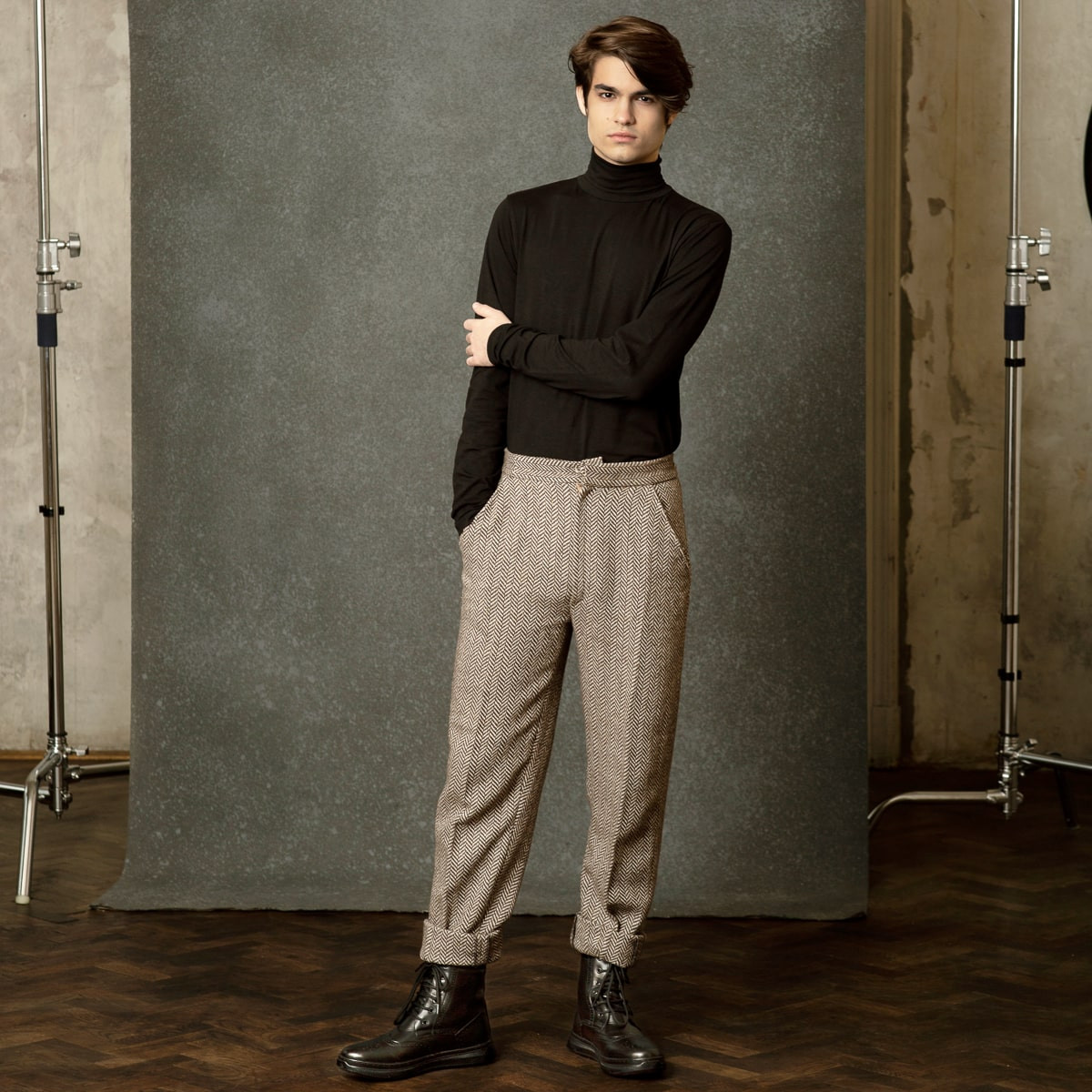 Bottes pour hommes en cuir naturel. La semelle légèrement élevée et confortable est parfaite pour la saison froide. La fourrure intérieure protège le pied du froid extérieur. Le design attrayant rend ce modèle remarquable. Qualité à prix de fabricant.