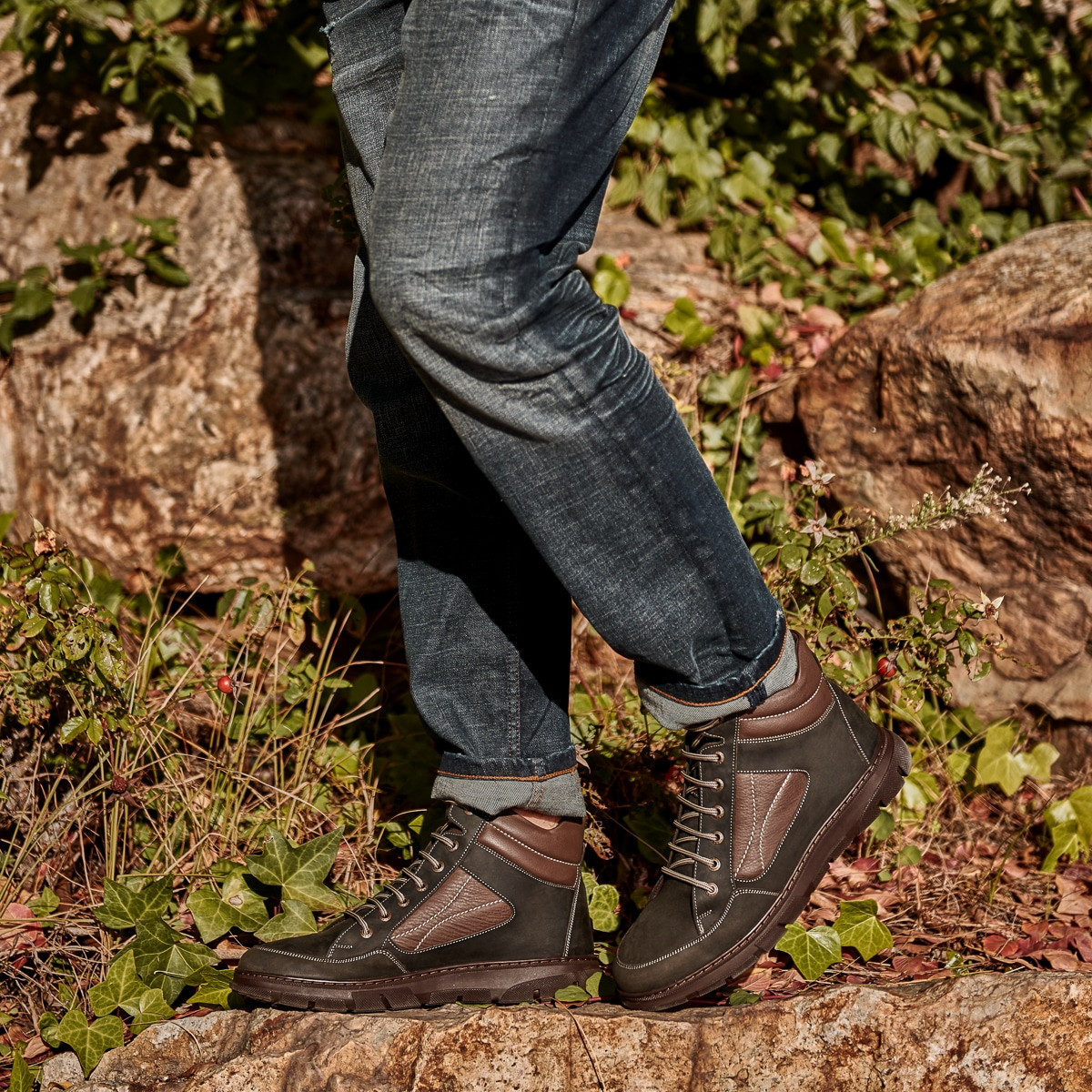 Bottes en cuir naturel pour hommes. Nos bottes se distinguent par leur confort, leur résistance et leur souci du détail. Les coutures réalisées avec soin garantissent souplesse et résistance dans le temps. La semelle est légère et ses arêtes promettent une stabilité sur les surfaces glissantes. La fourrure intérieure protège du froid extérieur. La qualité au prix du fabricant !