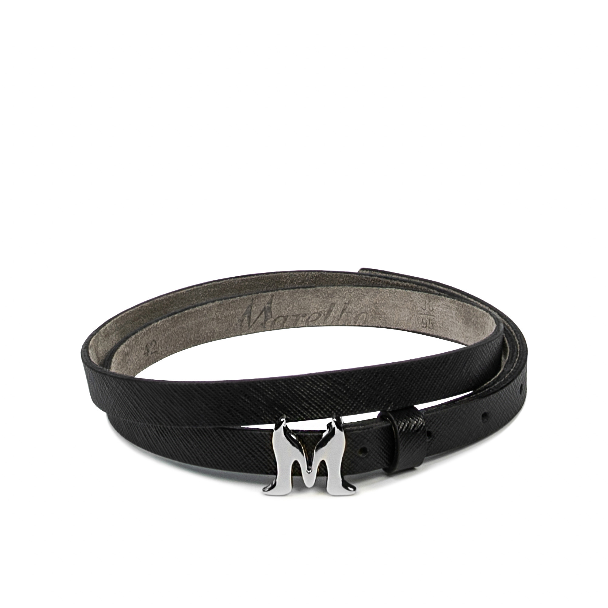 Découvrez la finesse et la polyvalence de la ceinture noire en cuir naturel de chez Marelbo. Avec une largeur de seulement 1,5 cm, cette ceinture fine est agrémentée d'une boucle argentée qui ajoute une touche de raffinement à n'importe quelle tenue. Fabriquée en cuir doux et malléable, la ceinture offre un confort exceptionnel et durabilité, idéale pour les journées d'été et bien plus encore. Profitez maintenant d'un prix très avantageux de producteur !