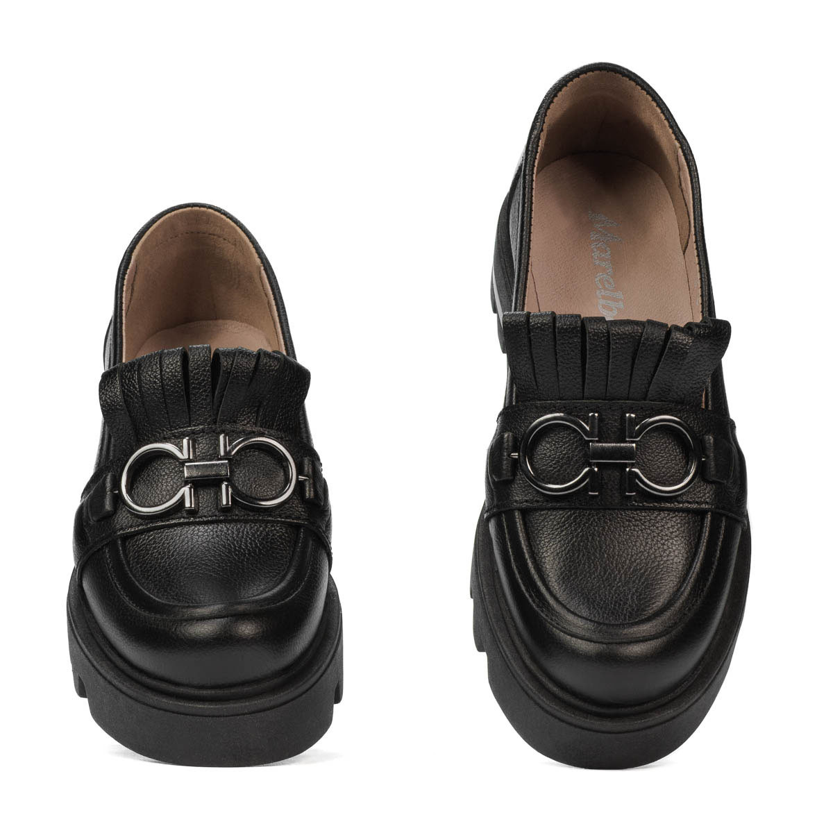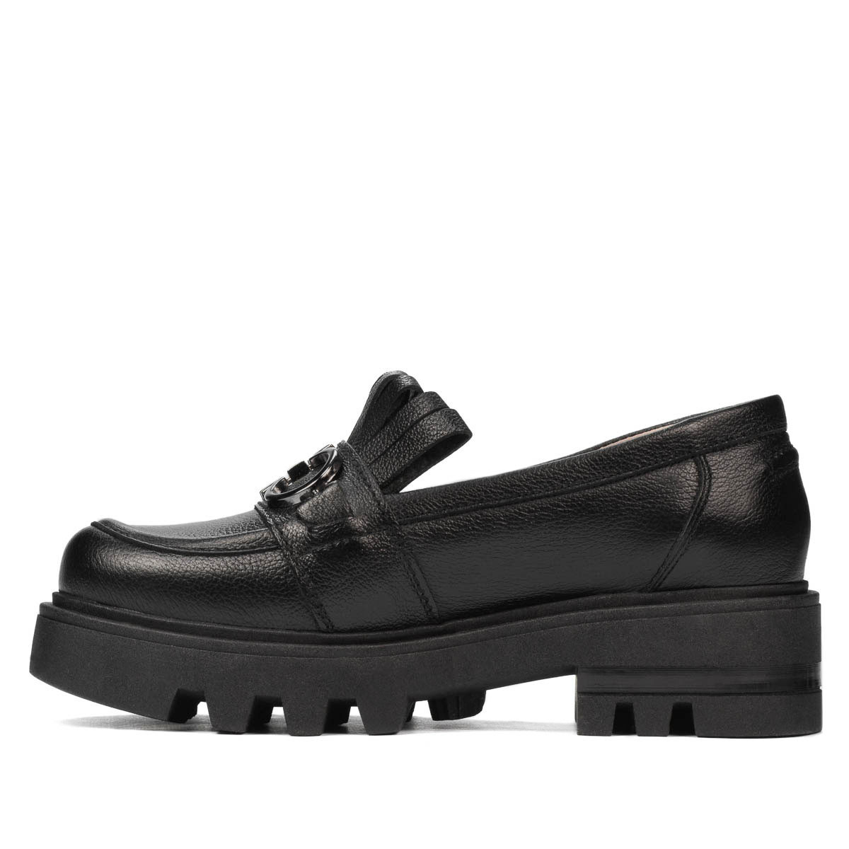Chaussures décontractées pour femmes en cuir naturel avec franges. La semelle haute et légère vous offre un confort sans faille. Le design est accessoirisé à la fois par la boucle argentée et les franges qui la surmontent. Simple et confortable, il s'accorde facilement avec n'importe quelle tenue. La qualité au prix du fabricant !