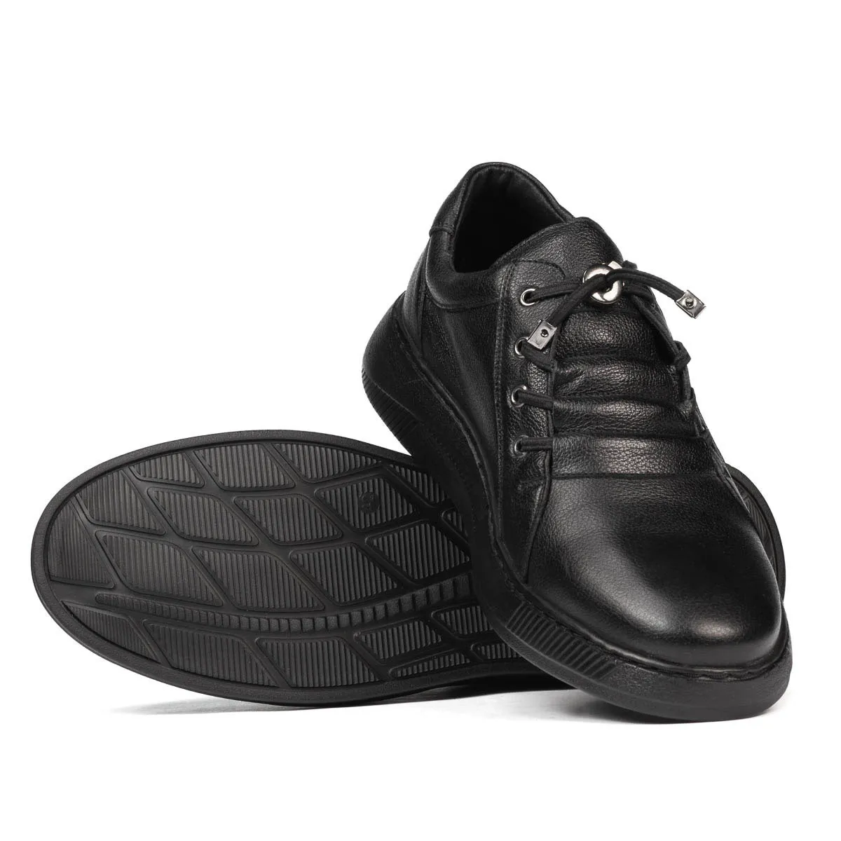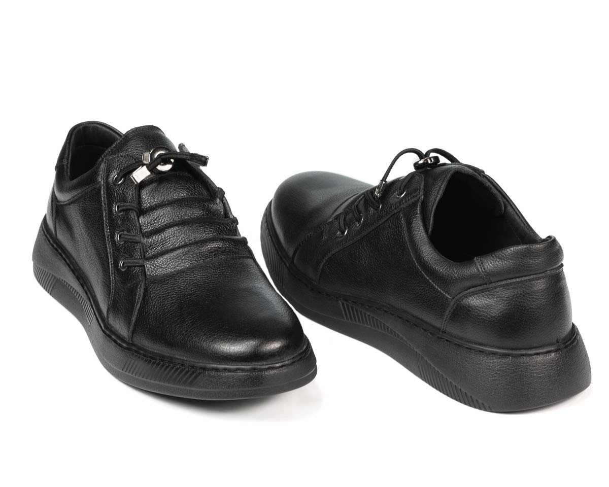 Chaussures décontractées/de sport pour hommes en cuir naturel. La semelle légèrement haute et confortable est parfaite pour les journées longues et chargées. Le lacet élastique facilite l'enfilage. Grâce à son design simple et attrayant, ce modèle ne devrait pas manquer dans votre garde-robe, étant facile à assortir à n'importe quelle tenue. Qualité et confort au prix constructeur.