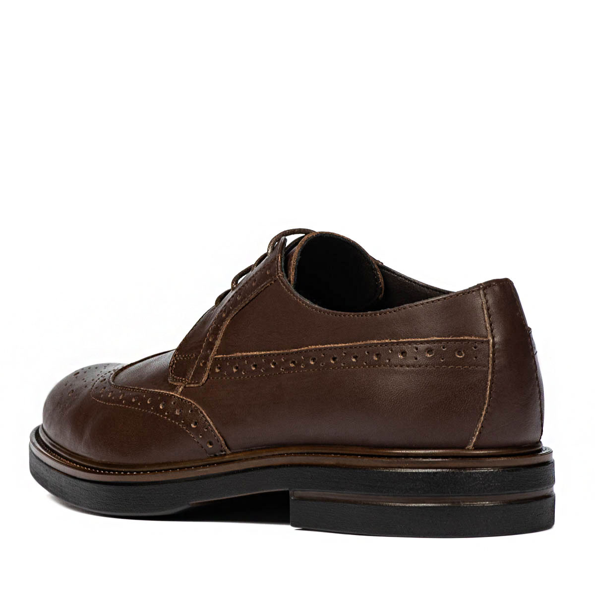 Attirez votre attention sur une paire de derbies élégantes en cuir naturel qui répondra à vos attentes. Le design est très soigné, et les perforations, les doubles coutures, la semelle et les lacets cirés contribuent également au succès de ce modèle. Les chaussures sont confortables, durables et vous pouvez les porter aussi bien pour des tenues professionnelles que pour des événements spéciaux.