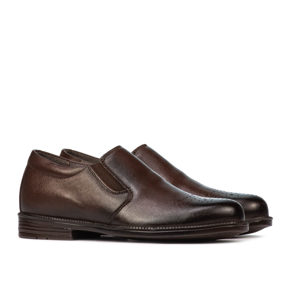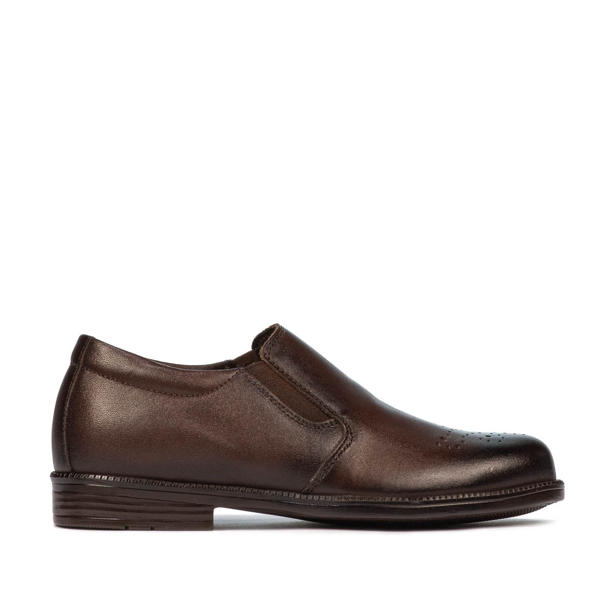 Chaussures pour enfants en cuir naturel. Confortable et pratique, facile à enfiler grâce à l'élastique latéral. La semelle souple offre à votre enfant une marche légère et confortable. Ils ont un design simple mais en même temps attrayant grâce aux perforations discrètes sur le dessus. La qualité au prix du fabricant.