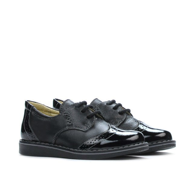 Chaussures pour petits enfants particulièrement adaptées aux journées fraîches d'automne. Fabriquées en cuir naturel, les chaussures sont confortables, ce qui les rend idéales pour une série d'activités et de promenades. L'association du cuir et du cuir verni est un détail qui fait la différence. Choisissez les chaussures pour enfants Marelbo, choisissez le confort et la qualité à un prix abordable.