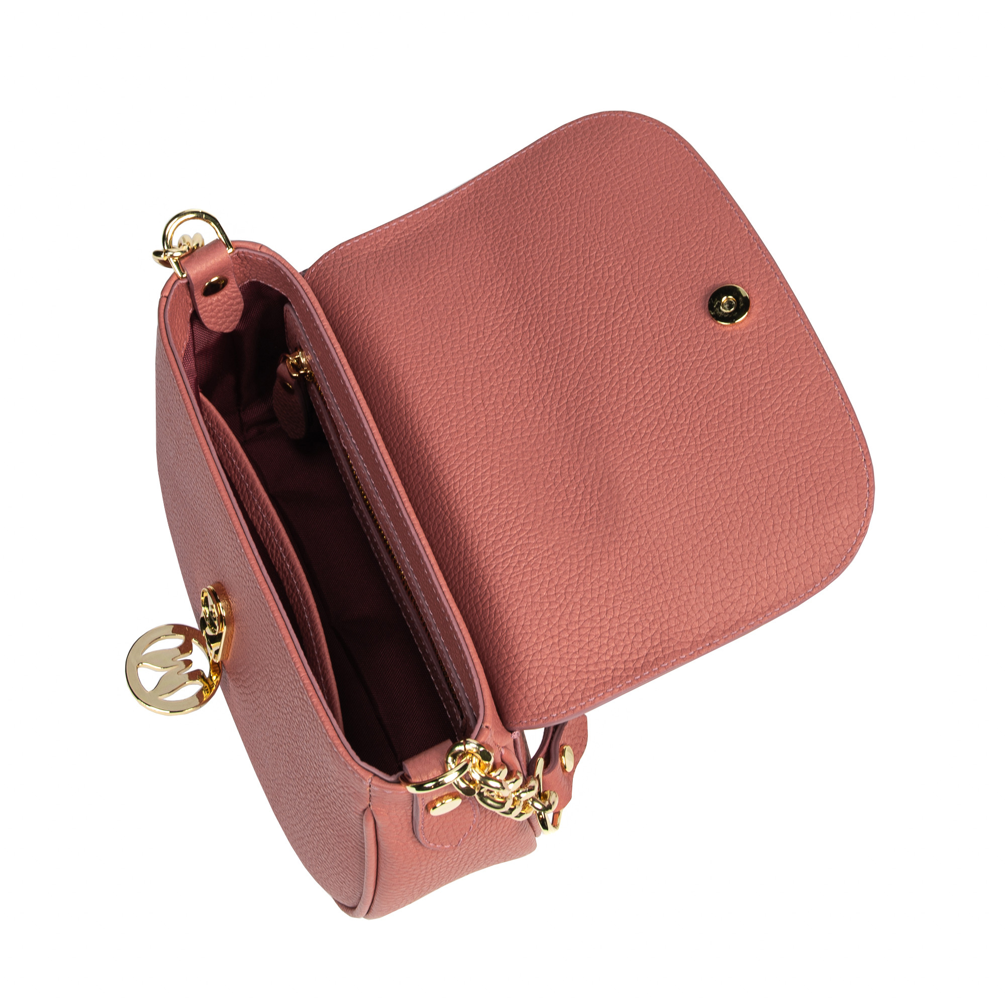 Ce sac à bandoulière rose en cuir naturel est le partenaire parfait pour n'importe quel jour, quelle que soit la destination. Compact mais suffisamment spacieux, il vous permet d'avoir toujours à portée de main les objets importants sans compromettre l'aspect impeccable de votre tenue. Que vous l'emportiez avec vous pour faire du shopping, en voyage ou au bureau, ce sac est parfait! Les détails métalliques élégants créent un contraste subtil et attrayant, et la bandoulière réglable vous offre la liberté de le porter comme vous le souhaitez, quel que soit l'outfit. Il se marie merveilleusement avec des tenues décontractées et de soirée, vous offrant un air chic sans effort.