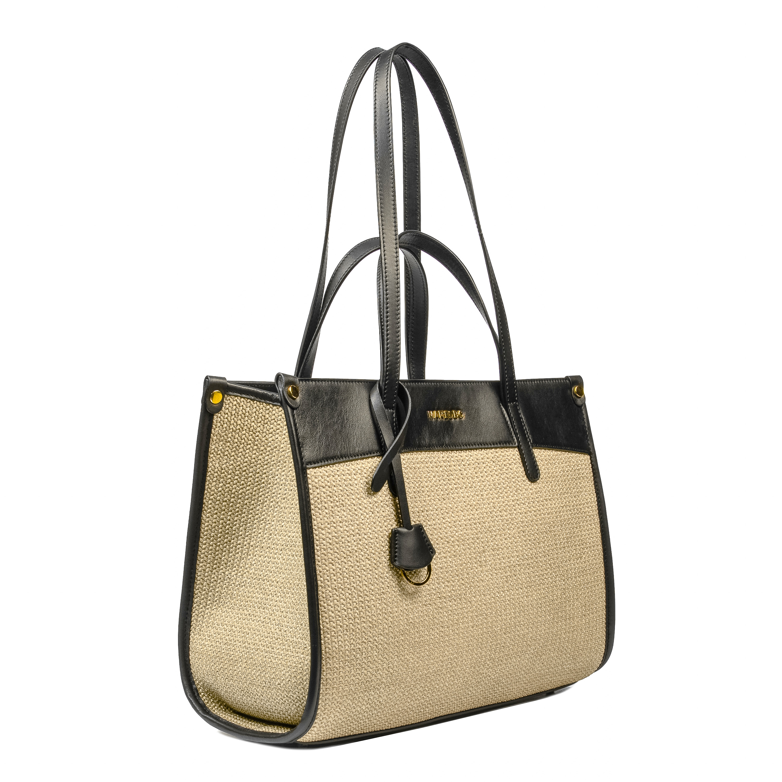 Choisissez ce sac maintenant et préparez-vous pour des vacances parfaites! Le sac avec des inserts en raphia attire immédiatement l'attention par sa texture naturelle et son ton chaud qui convient parfaitement aux journées ensoleillées. Les doubles poignées longues créent une ligne élégante sur l'épaule, tandis que le logo subtil en métal doré marque discrètement l'origine premium. Vous vous préparez pour la plage, un brunch de week-end ou une courte visite au marché? Choisissez ce modèle et sortez avec le sourire aux lèvres. Prix très avantageux du fabricant!