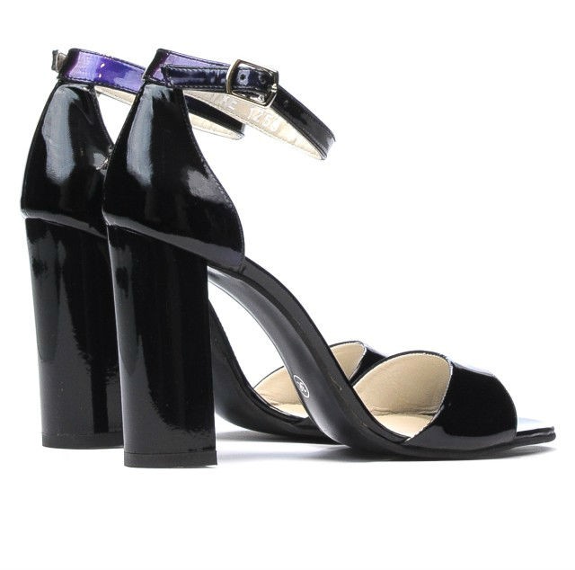 Un modèle spécial, grâce à la combinaison de couleurs (noir et violet), qui offre une ambiguïté particulière dans la perception des couleurs. Ils peuvent être combinés avec des robes unies et des accessoires élégants dans des tons froids. Ils conviennent aux occasions spéciales (mariages, anniversaires, festivités). Le talon haut et épais offre stabilité et raffinement à votre démarche.