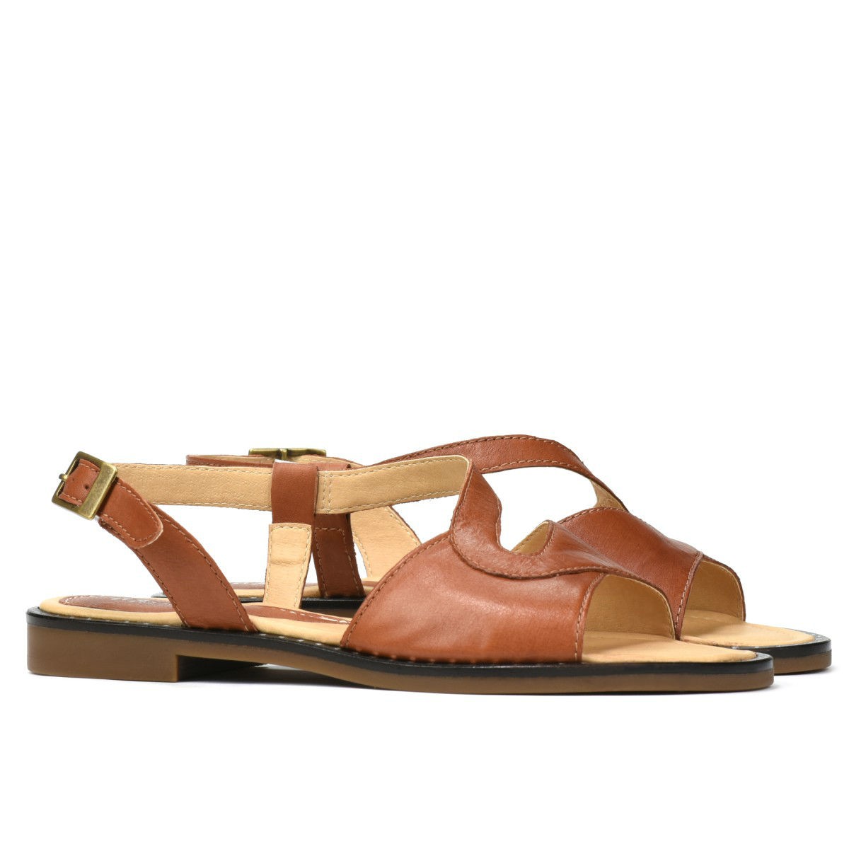 Les sandales en cuir naturel avec découpes latérales sont confortables et faciles à enfiler. La barre avec boucle à l'arrière permet d'ajuster la sandale en fonction du pied. La semelle légère et confortable est agrémentée d'un cadre décoratif, ce qui rend ce modèle remarquable. Prix constructeur.