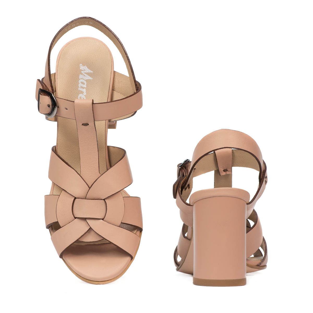 Sandales en cuir naturel pour femme. Le talon carré offre stabilité et confort. Les brides sur la partie supérieure maintiennent le pied et ont un design agréable. La qualité au prix du fabricant.