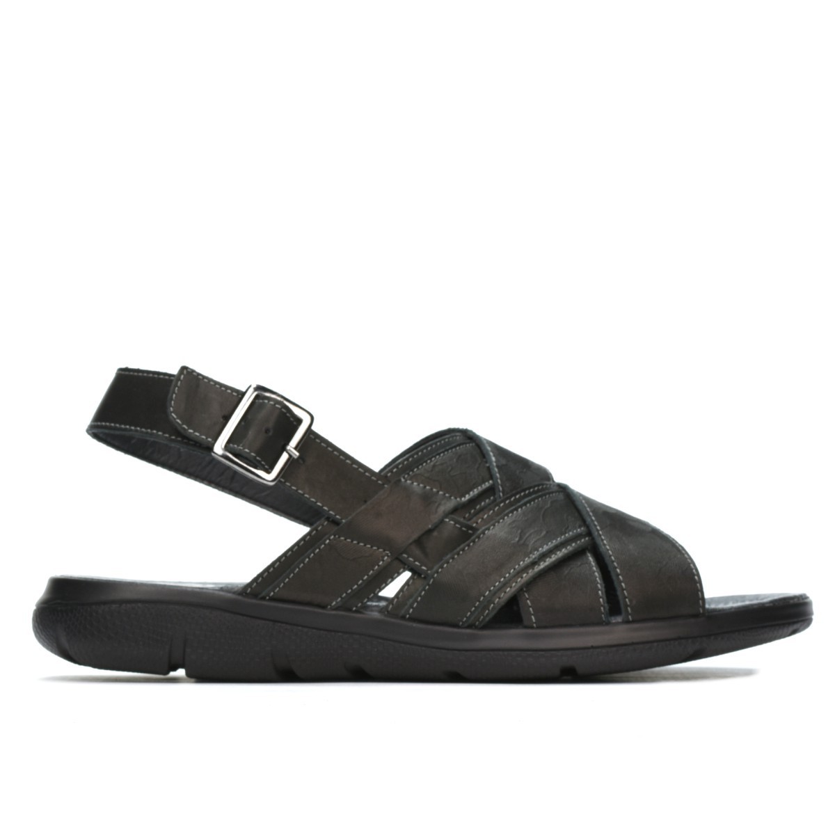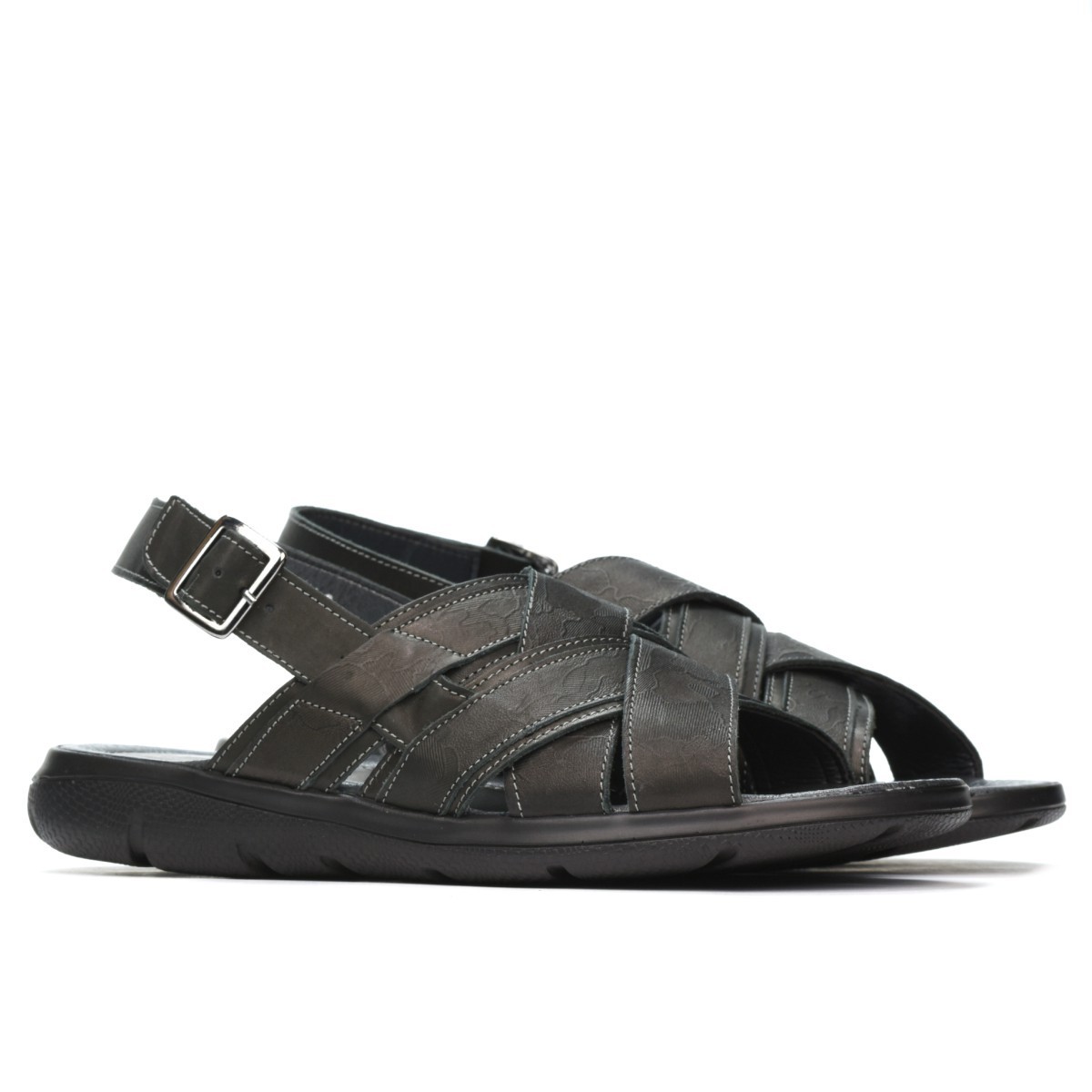 Sandales pour hommes en cuir naturel. La semelle est légère et confortable. La fermeture à boucle facilite l'enfilage rapide. Le modelé à la surface de la peau est un point fort du produit. La qualité au prix du fabricant.